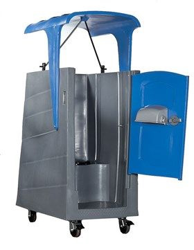High Rise Unit, a portable toilet on wheels designed to meet the unique needs of high-rise construction projects and tall buildings. This innovative solution allows for easy and efficient transport of restroom facilities to higher floors, ensuring that workers on upper levels have access to a clean and convenient toilet without needing to descend to lower floors.